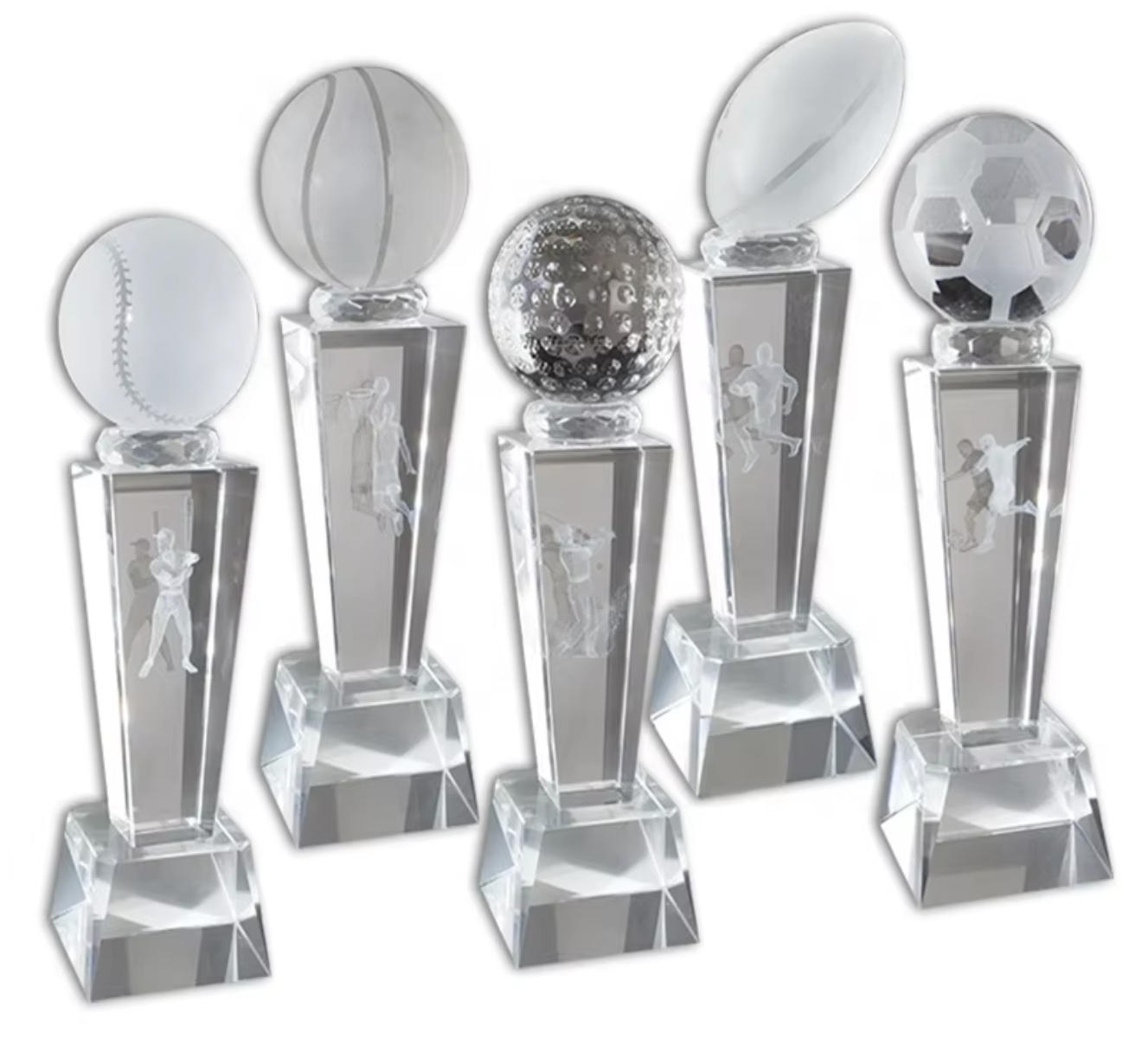 This distinctive tennis award combines a crystal tennis ball with a 3D engraved square column base. The deep etching allows for stunning logo and text customization. A prestigious trophy for tournaments and clubs. Also available as football, basketball trophy.