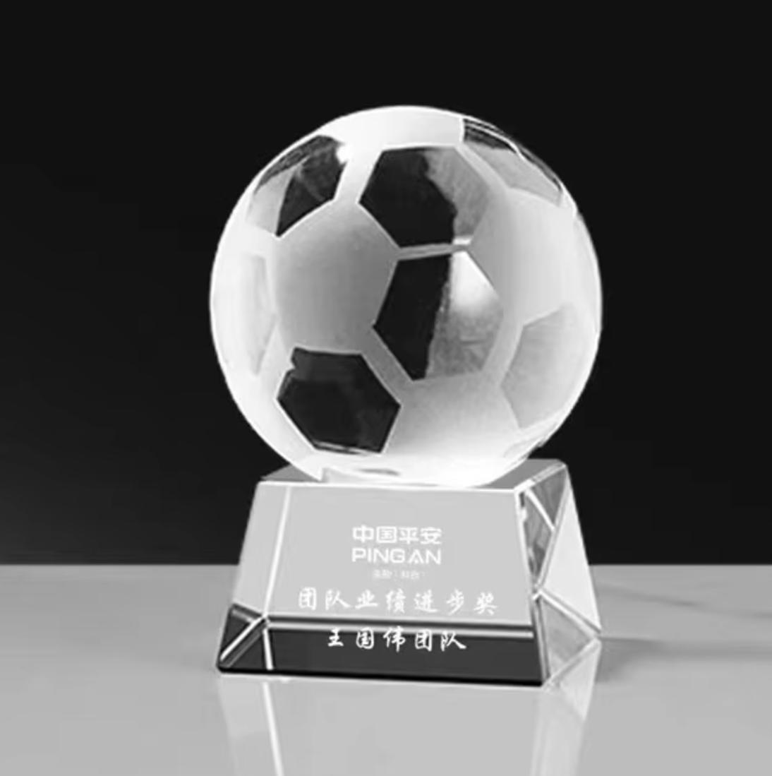 Presenting our exceptional Custom Crystal Football Trophy, where precision engineering meets artistic excellence. This stunning piece features a brilliantly crafted crystal football mounted upon a distinctive trapezoid base, creating a perfect blend of modern aesthetics and timeless elegance.