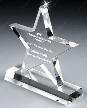 Engraved Crystal Star Trophy With A Trapezoid Base